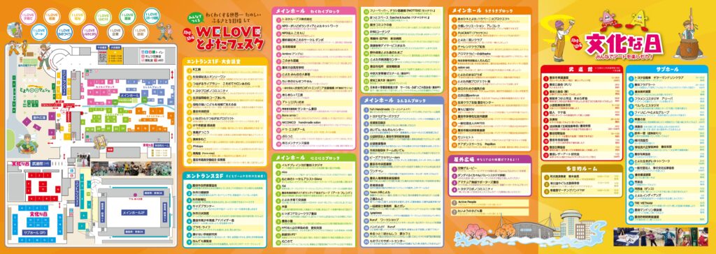 ●クイズ王になろう!「アタック25 in とよた」 ●I(私・愛)の主張 ●豊田おいでんまつりのおいでんをメインホールで踊ろう!「おいでんフラッシュモブ」 ●とよたアート発見!「なんでも展覧会」 ●会場を周遊して抽選会に参加しよう!「ぐるりんラリー」